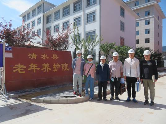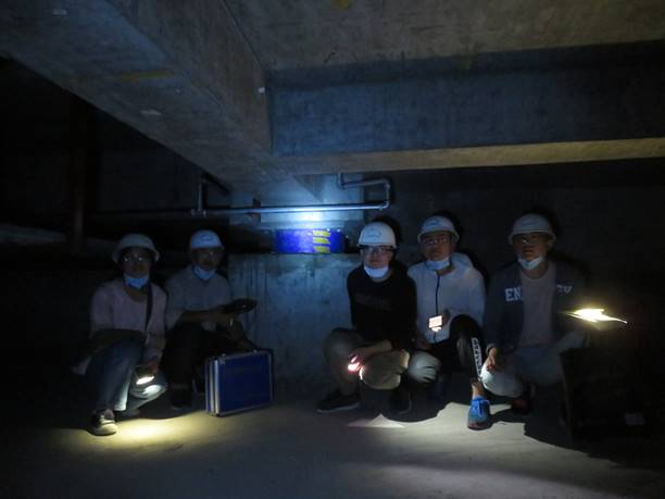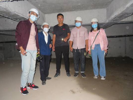 调研小组部分成员在清水县某工程隔震层 (清水某残疾人康复中心)