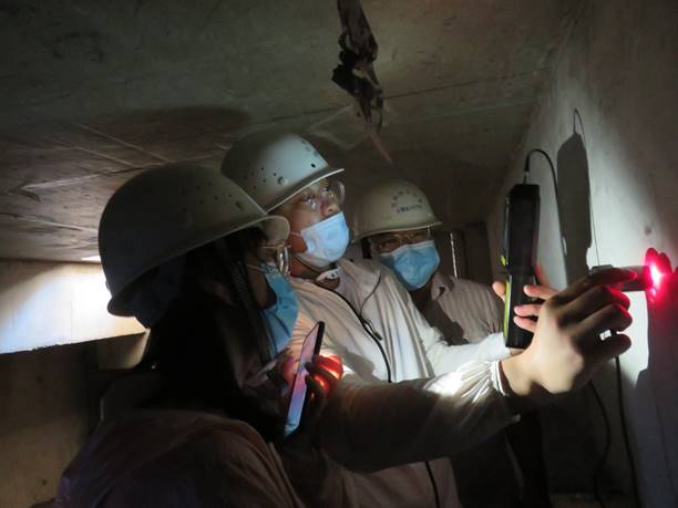 研究生在隔震层做检测(成县某小学工地)