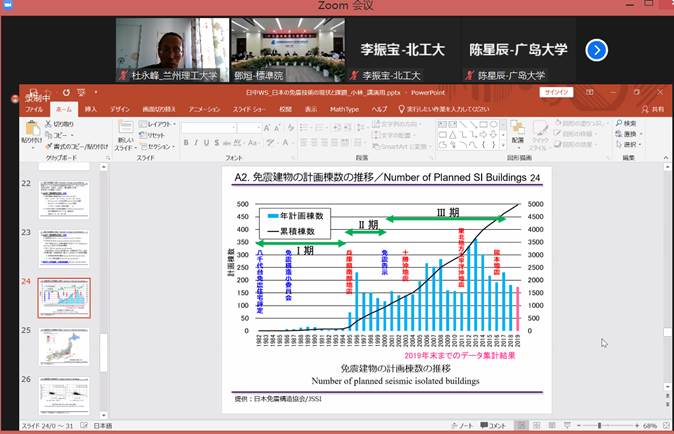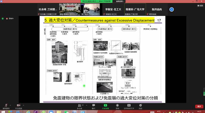 借助本次会议的机会,杜永峰教授代表国际合作基地与日方合作专家安排了国际合作研究项目专题沟通。次日在线上介绍了兰州理工大学研究团队的相关研究进展,就兰州理工大学研究团队与日方在装配式建筑的合作事宜作了研讨。