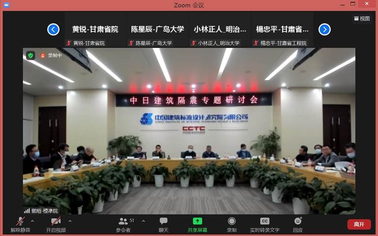 10月29日,2021年中日建筑隔震专题研讨会在线上举办,分别在北京、东京、广州、兰州和成都等地设立线下分会场。周福霖院士在广州做了“中国建筑隔震技术现状及研究方向”的线上学术报告。日本明治大学小林正人教授在东京做了“日本建筑隔震技术现状及研究方向”的线上学术报告。日本设计清水谦一做了“日本建筑隔震设计事例”的线上学术报告。中国建筑标准研究院郁银泉大师线上做了“中国建筑隔震工程设计案例”的线上学术报告。