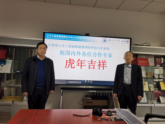 发布会之前,省减震隔震国际合作基地负责人杜永峰教授、甘肃省土建学会教育工作委员会主任委员韩建平教授表达了对国内外合作专家的新年祝福。