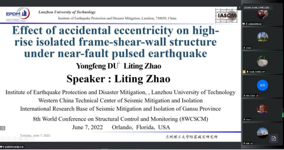 2022年6月5~8日,第8届结构控制与监测国际会议 (8th World Conference on Structural Control and Monitoring, 8WCSCM)在美国佛罗里达州奥兰多市召开。本次会议由国际结构控制与监测协会(IASCM)主办,美国中佛罗里达理工大学(University of Central Florida)承办。这个会议是有关结构控制与监测的学术层次较高的国际会议,本届会议吸引了大批从事结构系统识别和模型修正、结构健康诊断与预后、传感器技术创新与应用和结构损伤与非线性行为识别等方面的研究者参会。本次会议除了现场参会的代表、研究生和企业代表近300名之外,还给世界各地线上参会的代表分配了名额。国际减振控制与监测协会中国分会常务理事、兰州理工大学防震减灾研究所所长杜永峰教授线上参会,并在兰州理工大学设立线下分会场。